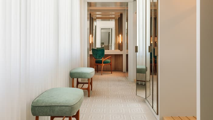 Французскому дизайнеру интерьеров Анри Самуэлю удалось создать уникальную атмосферу благодаря смешению традиционного французского стиля 18 века с геометрией ар-деко и акцентами на произведениях искусства лучших местных художников, картины которых заняли почетное место на стенах отеля.