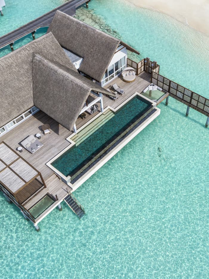 - 15-метровый плавательный бассейн и терраса с гамаками над водой и прямым выходом к лагуне