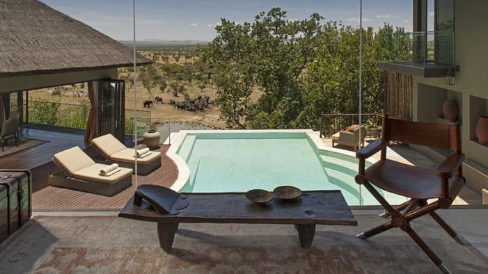 Освежитесь в глубоководном панорамном бассейне, откуда открываются потрясающие виды на саванну, примите душ под открытым небом, а после расслабьтесь в уютной спальне или отдельной гостиной.
