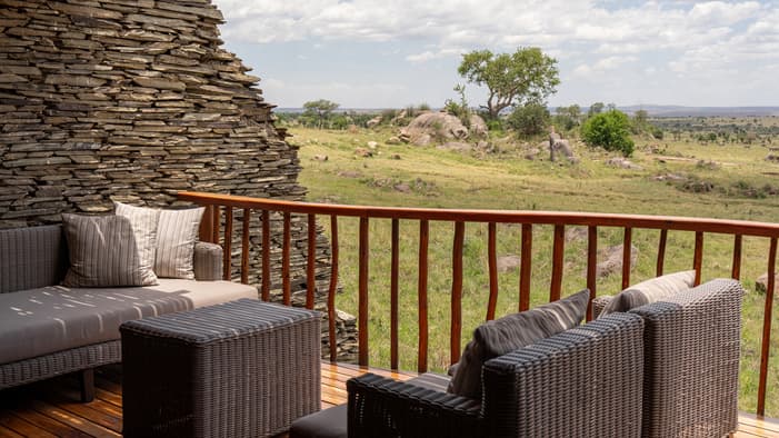 An elevated open-air terrace with direct views over the Serengeti plains is complemented by a private pool in our stylish suites, while generous indoor living areas include a master ensuite bedroom, lounge area with a double trundle bed and second bathroom.