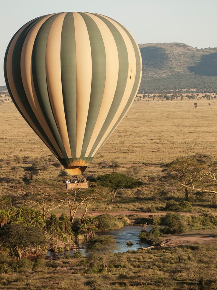 Сафари на воздушном шаре над СеренгетиОценить все великолепие живописных ландшафтов Серенгети можно только с высоты птичьего полета. Проснитесь рано утром (мы приготовим для вас легкий завтрак), чтобы отправиться на рассвете в часовой полет на воздушном шаре над саванной, после которого вас будет ждать полноценный завтрак с шампанским под открытым небом.
