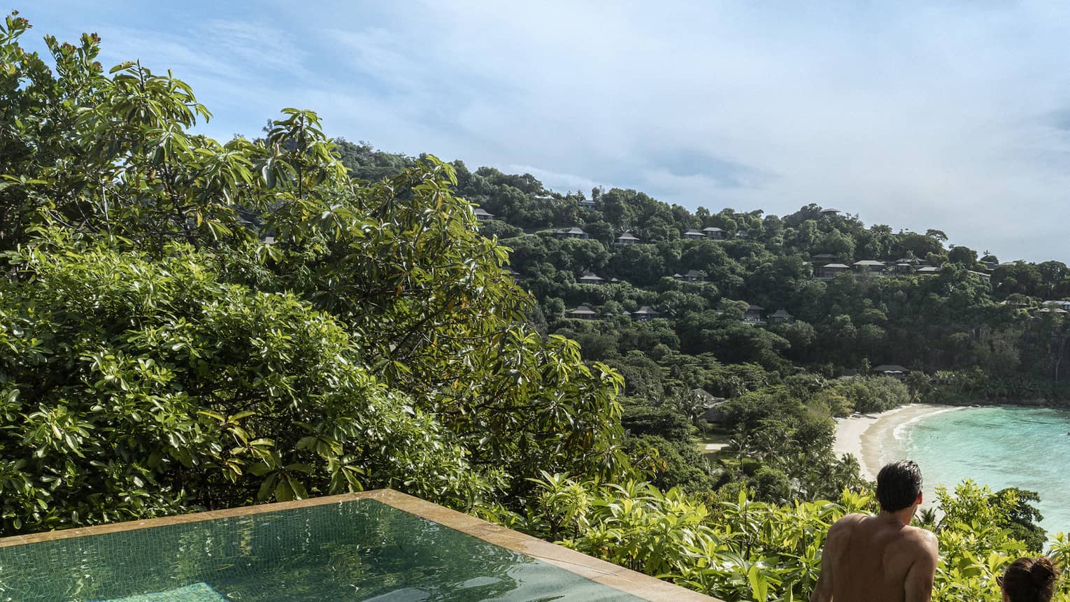 Освежитесь в панорамном бассейне вашего люкса с видом на океан и бухту Птит-Анс