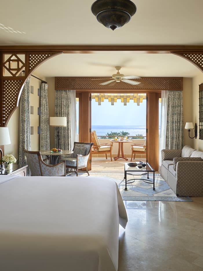 Этот гостевой номер с чудесным видом на сверкающее Красное море предлагает много места для отдыха как в помещении, так и на свежем воздухе. Устройте себе сон в уютном уголке рядом с кроватью или на собственной террасе или балконе – идеальная возможность увидеть сон о путешествиях по пустыне или морю.