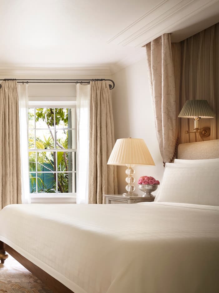 Rich, solid walnut flooring topped with hand-knotted Persian rugs, custom and antique furnishings – combined with red-tiled patios and covered verandas – capture the elegance of a 1920s private estate in these intimate bungalow rooms.