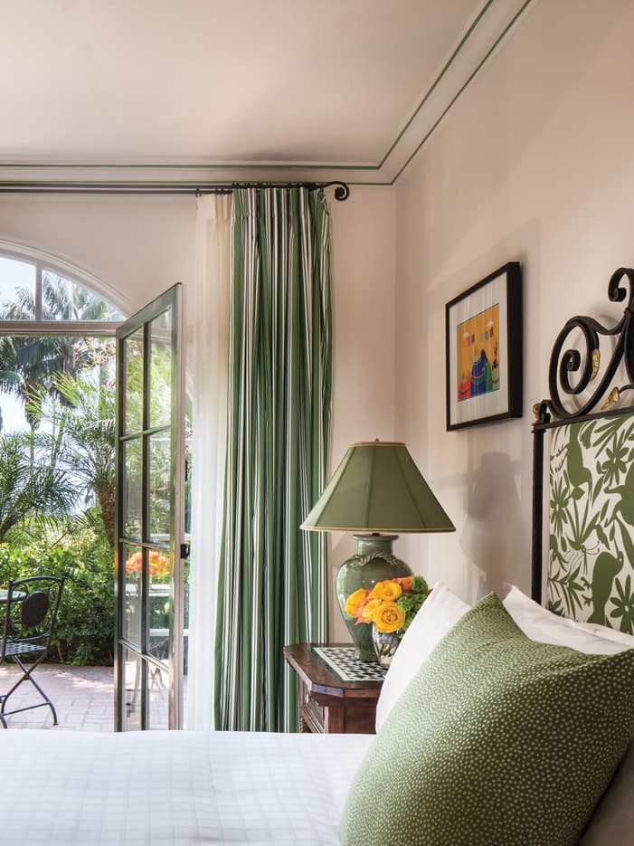 Classic Spanish Colonial ambience, with rich golds and greens.