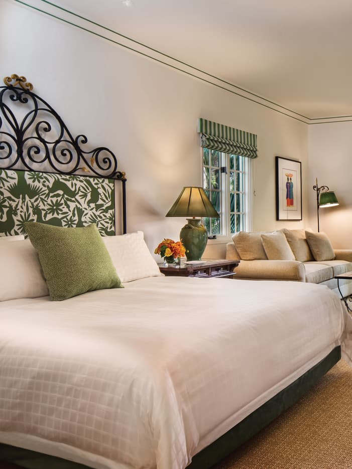 All about the detailsSolid walnut furnishings with inlaid, hand-cut Andalusian Zillij tiles, hand-carved 24K gold-leaf mirrors, vintage-style Waterworks pedestal sinks with satin-nickel fixtures – not to mention L'Occitane Mer and Mistral bath amenities – are just a few of the bespoke details that make these Spanish Colonial suites feel so luxe.