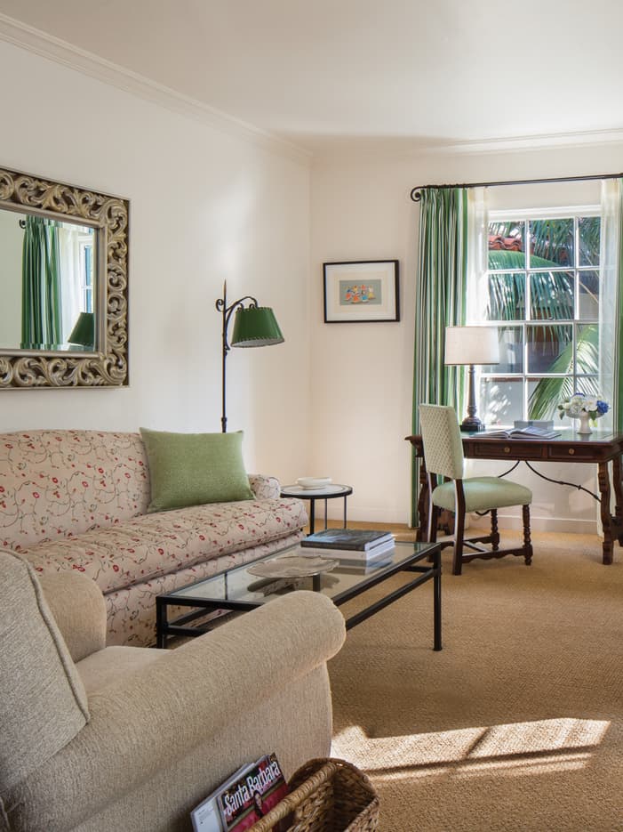 All about the detailsSolid walnut furnishings with inlaid hand-cut Andalusian Zillij tiles, Hand-carved 24K golf leaf mirrors, vintage-style Waterworks pedestal sinks with satin nickel fixtures, not to mention L'Occitane Mer and Mistral bath amenities, are just a few of the bespoke details that make these Spanish Colonial suites feel so luxe.