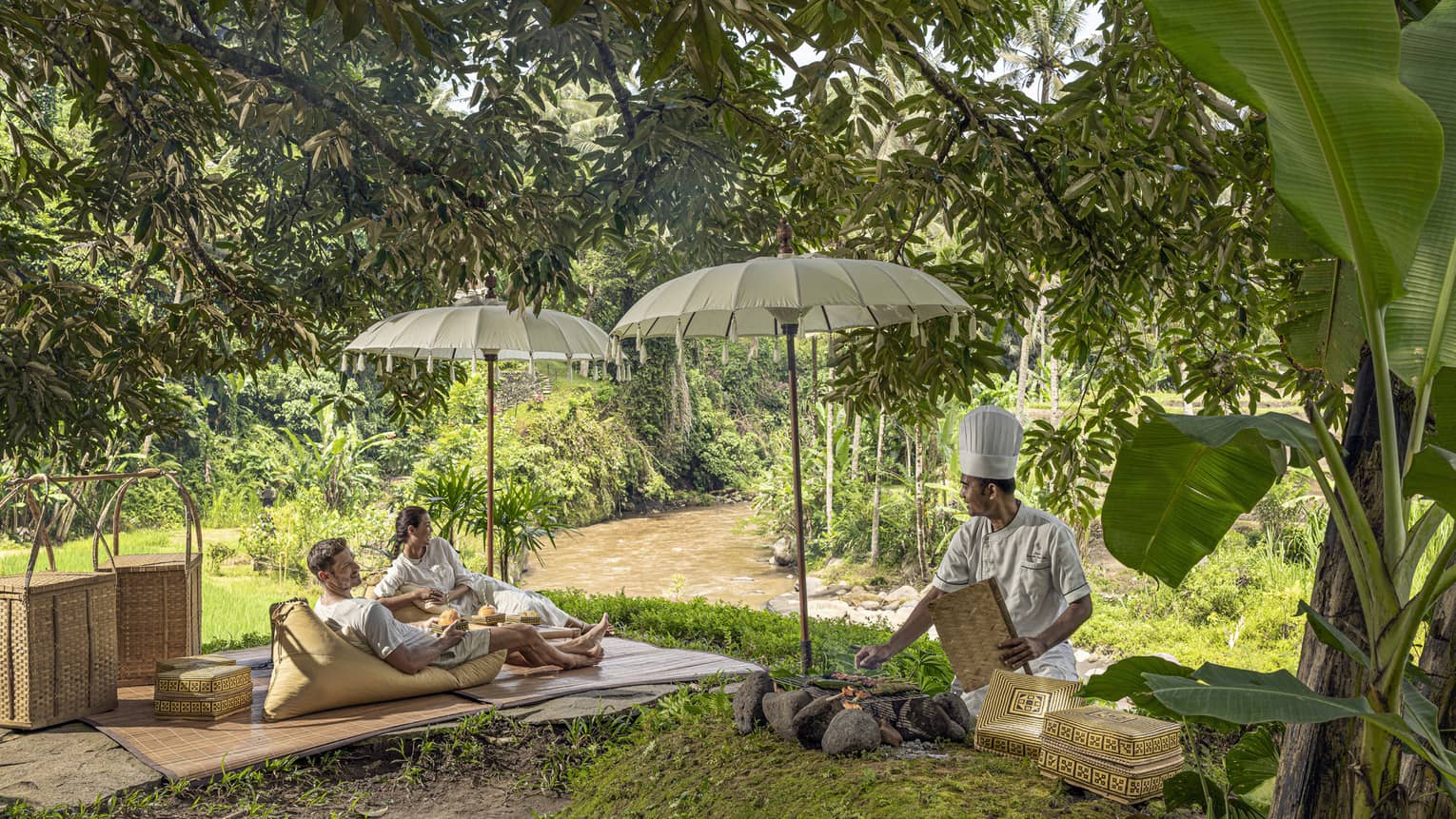 Join our chef for a culinary adventure into nature, with a private picnic by the Ayung River. Soak up the ethereal energy and scenery of the Sayan Valley while the chef sets up a camp-style kitchen for cooking your Balinese lunch.