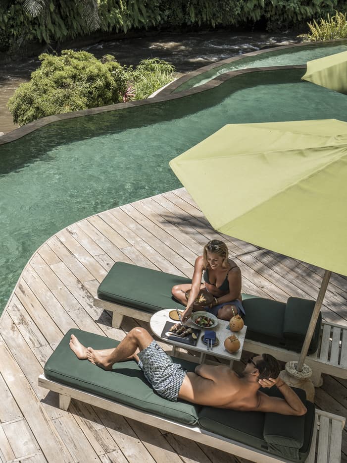 Experience a jungle paradise at the ultimate honeymoon Resort for a romantic getaway in Bali. Nestled in the vibrant Ayung River Valley, our Bali couples’ Resort offers the perfect transition from wedding joy to honeymoon bliss. Spend your days in a private villa with a plunge pool, serenaded by the soothing sounds of the river, or embark on adventures like private rafting trips and visits to sacred temples.