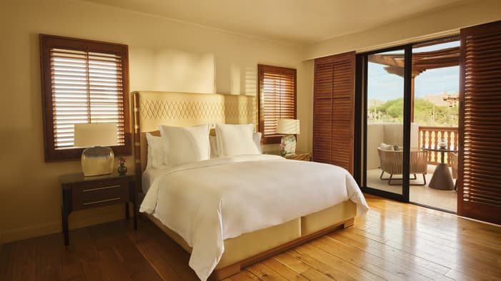 Contemporary design enhances the luxury desert experience with natural elements set against a subtle earth tone palette.