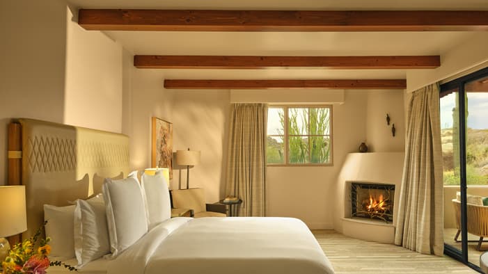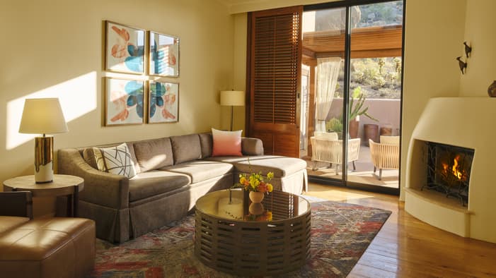 Reflecting the beauty of the desert with adobe-style design, our stunning casita accommodations feature private balconies or terraces, gas-burning kiva fireplaces and newly renovated bathrooms, all with deep soaking tubs.