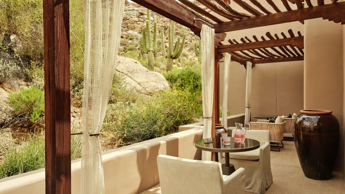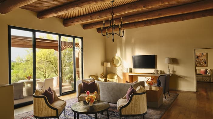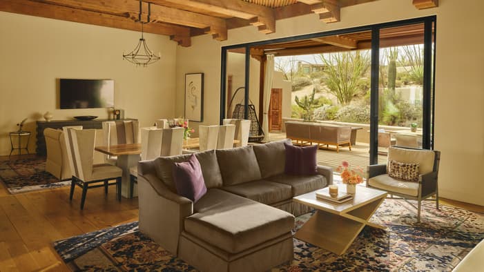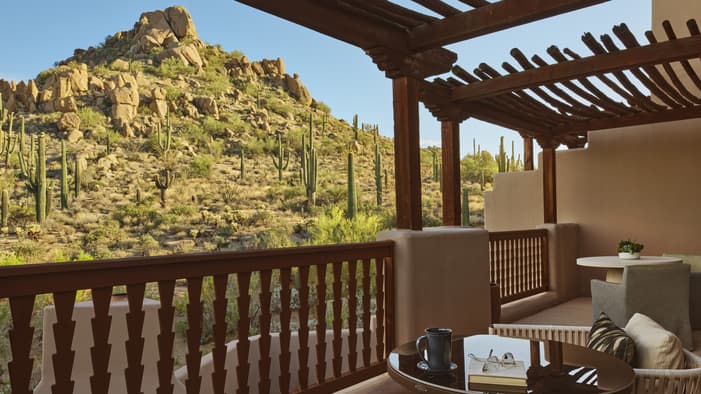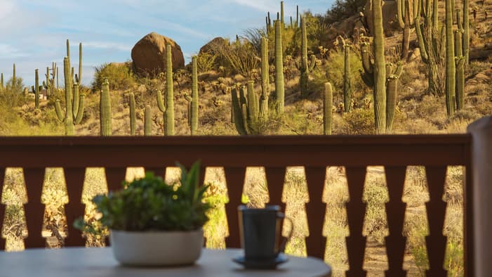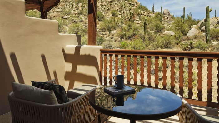Our casitas and suites are designed to bring the beauty of the desert indoors, with furnished balconies and patios, floor-to-ceiling windows and garden showers.
