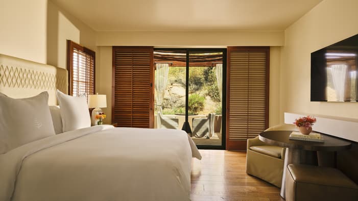 Suites provide a luxurious respite for your stay, offering comfortable living areas and bedrooms with full bathrooms and al fresco garden showers. On the meticulously furnished private patios, you'll find fire features with relaxation spaces, outdoor living areas with TVs and fully private plunge pools.