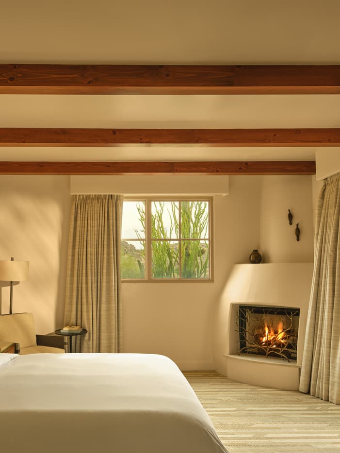 Soak up Scottsdale’s more than 330 days of sunshine from your spacious outdoor patio, fully furnished and complete with a flat-screen television. Step in from your private patio or balcony overlooking the Sonoran Desert and relax in the spacious guest room with a gas-burning fireplace. A newly enhanced bathroom features a deep soaking tub and luxurious separate shower.