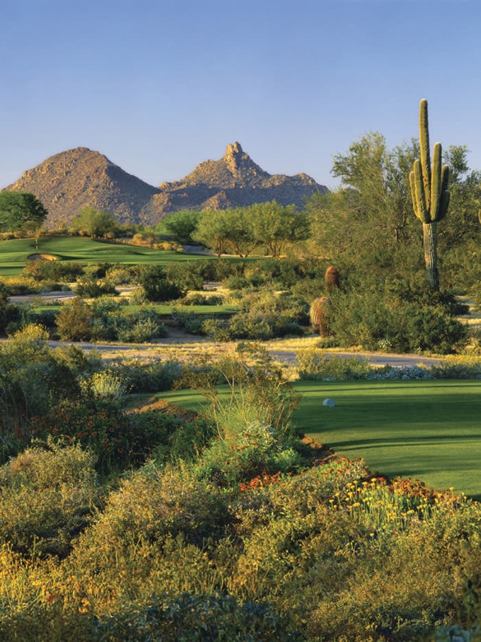 The PinnacleWith saguaro cacti fronting mountain peaks, the scenery on this 7,009-yard, par-71 course is as compelling as its five sets of tees.