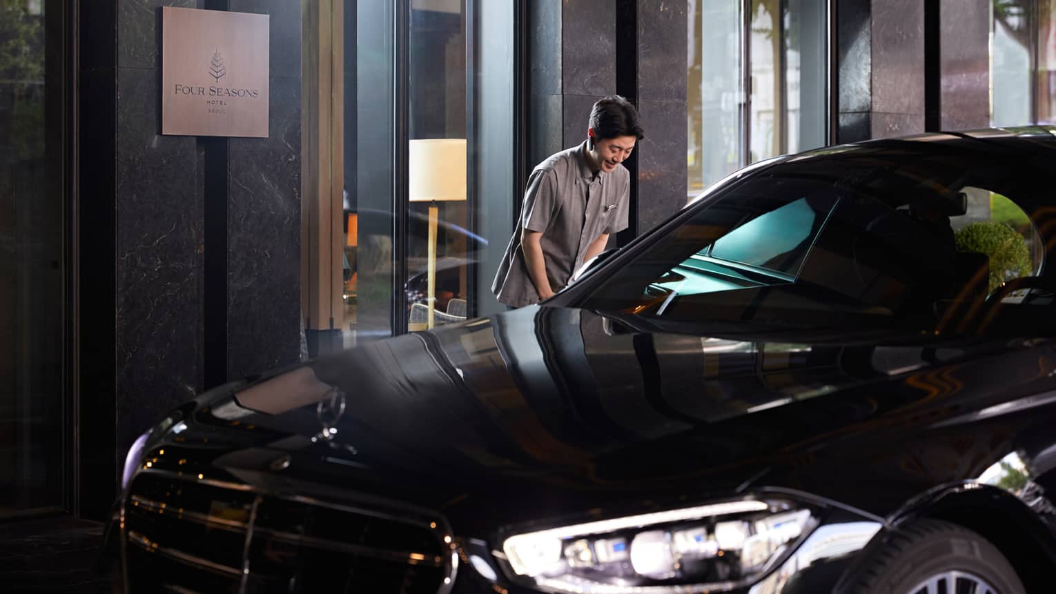 Four Seasons Hotel Seoul rises high above the busy streets of the central business district.