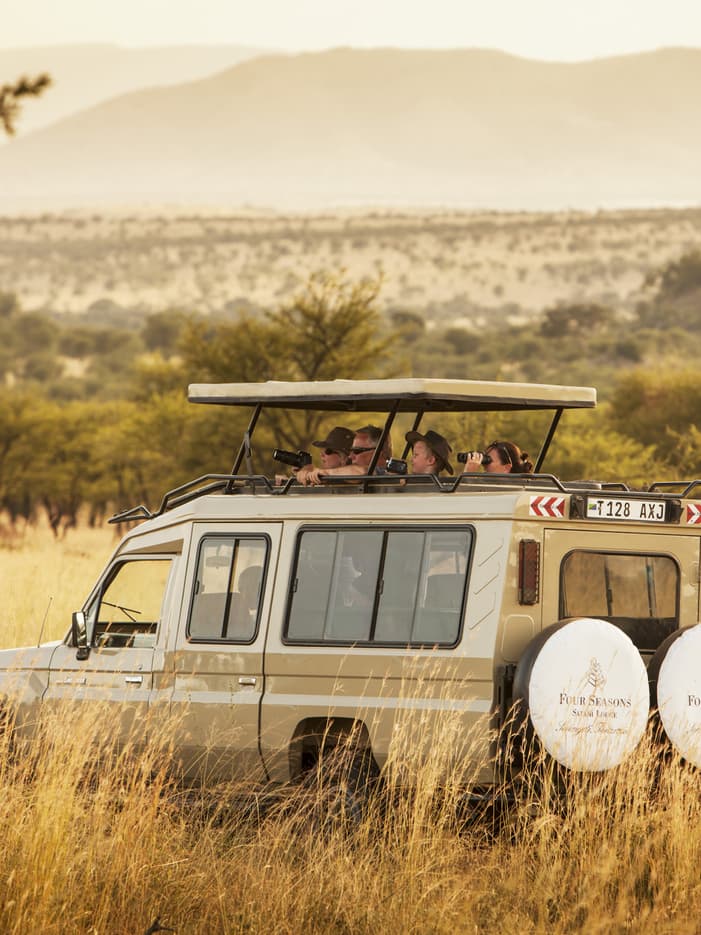 Awake early for a 4:30 am departure to the launch site of your hot air balloon safari. Glide across the tranquil Serengeti skies, looking down on the majestic landscape and wildlife below. Upon landing, you will be transferred to your breakfast location – in the heart of the wilderness. After finishing your champagne breakfast, continue on your morning with a Four Seasons game drive to explore the nearby kopjes, on the lookout for big cats amongst the tall grasses and rock formations.