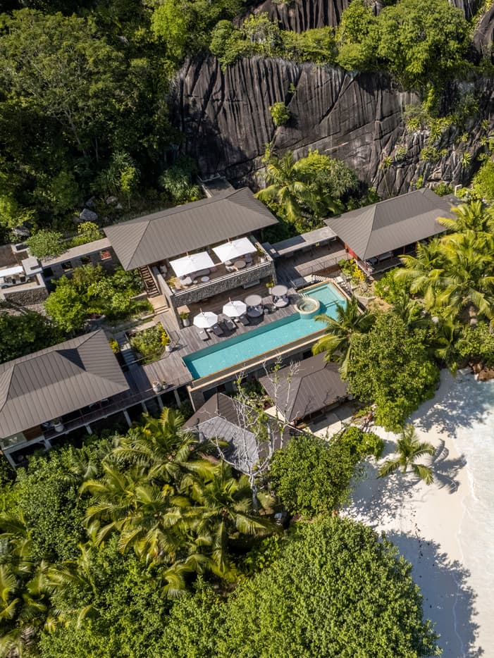 One of only two suites with direct private access to the beach, the Three-Bedroom Royal Suite is comprised of three pavilions with dining and lounging areas. It also offers a private gym, a separate study and den, an infinity-edge pool and a jetted tub overlooking Petite Anse beach.