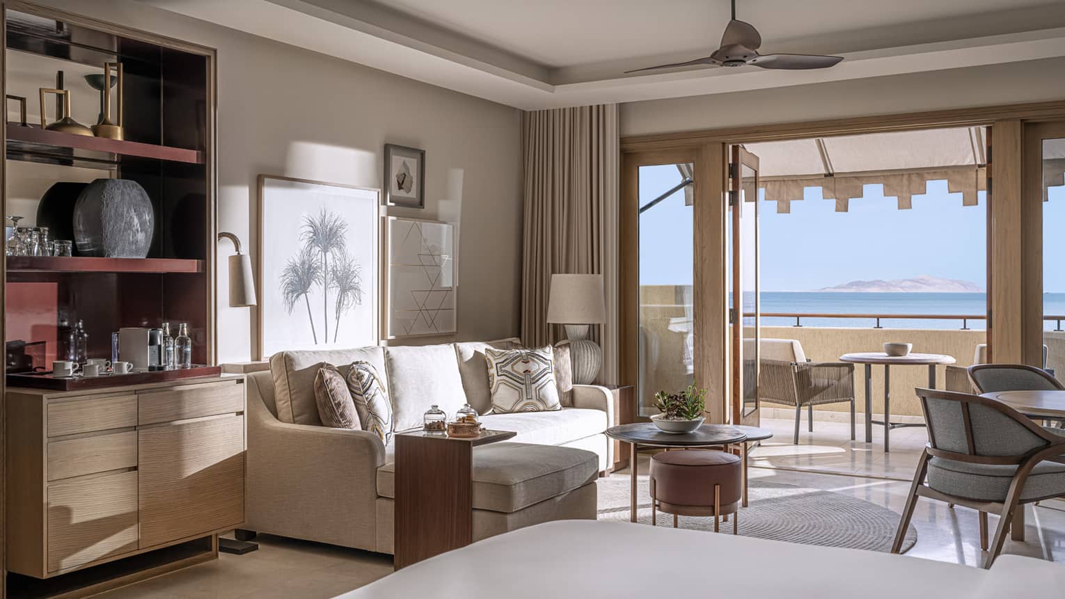 Boasting our very best view of the Red Sea, this spacious guest room offers the latest Four Seasons luxury, including sleek modern décor and state-of-the-art technology. Relax in the indoor living area or outdoors on the balcony or terrace. Your bathroom is a spa-like sanctuary, aglow with sunlight.