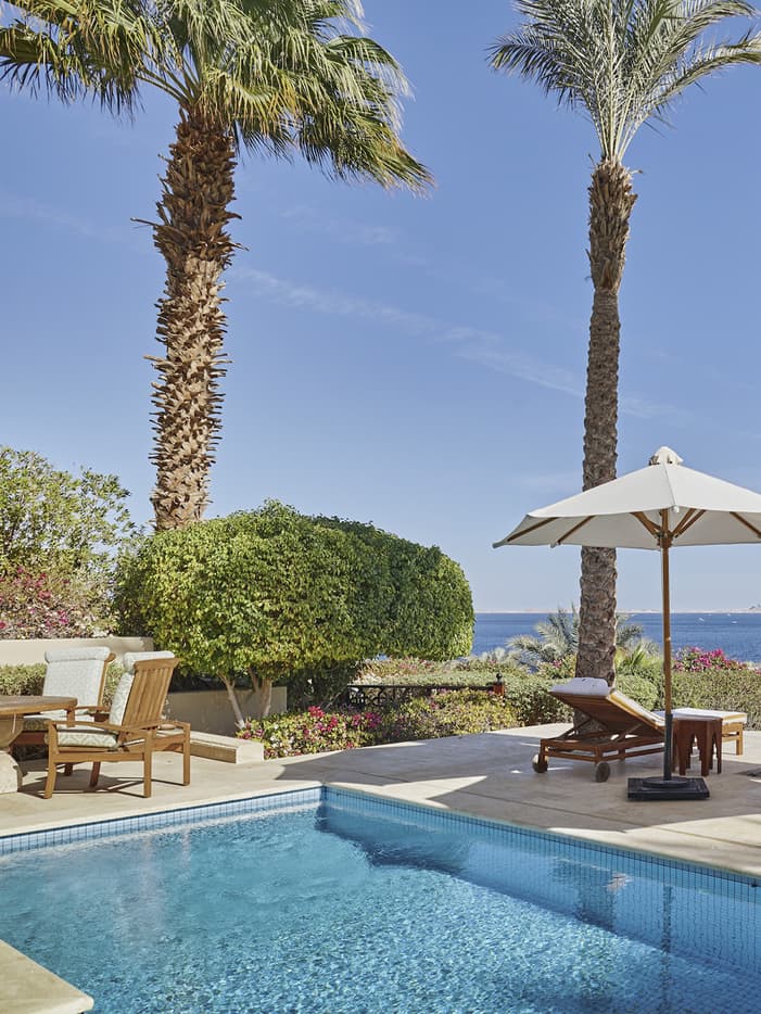 Enjoy a truly presidential experience in this sumptuous two-bedroom sanctuary – a stand-alone beachfront residence with its own private pool and garden. Traditional Arabian opulence defines the living and dining areas, flowing outdoors to an expansive sea-view terrace. Envision alfresco dinner parties and evening soirées.