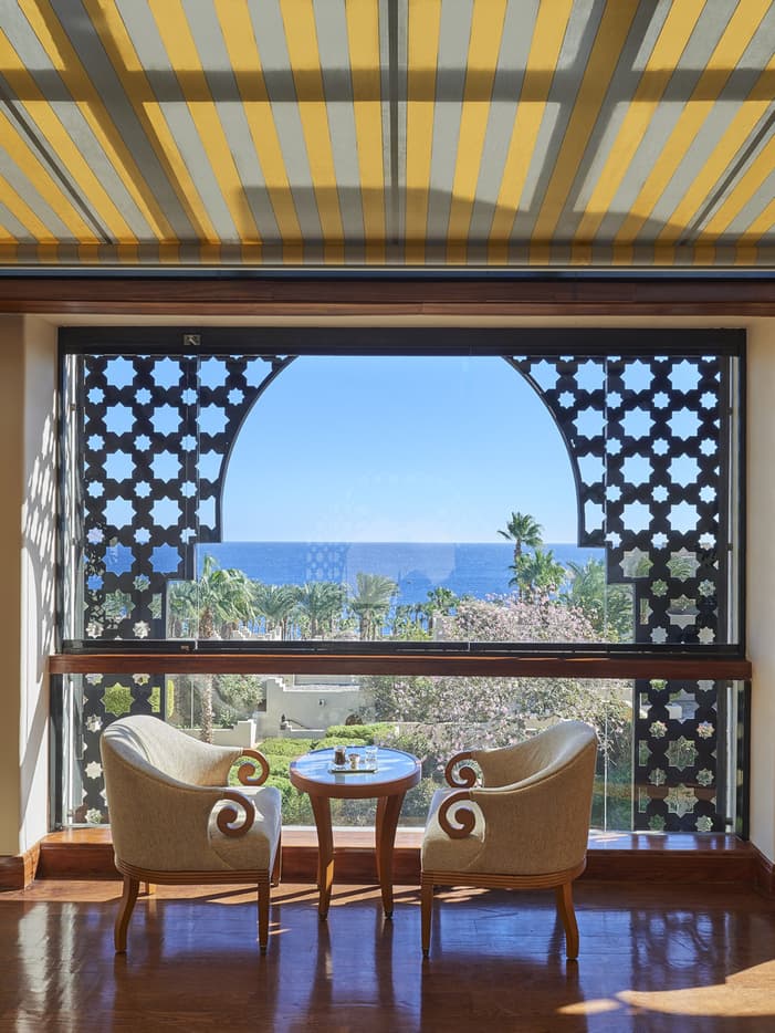 The Observatory Lounge offers a relaxed ambience with spectacular views of Tiran Island and the Red Sea, as well as paintings and sculptures by contemporary local artists. The Observatory Lounge is also available for private reservations.