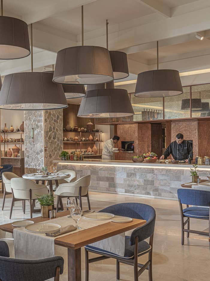 Bullona is our acclaimed Mediterranean restaurant, where artistic culinary experiences crafted by Chef Giuseppe Cadoni mirror artful indoor décor surrounding an opulent round bar and crudo station. The outdoor lagoon-side seating under the starlit skies is idyllic for elegant dinners and memorable celebrations.