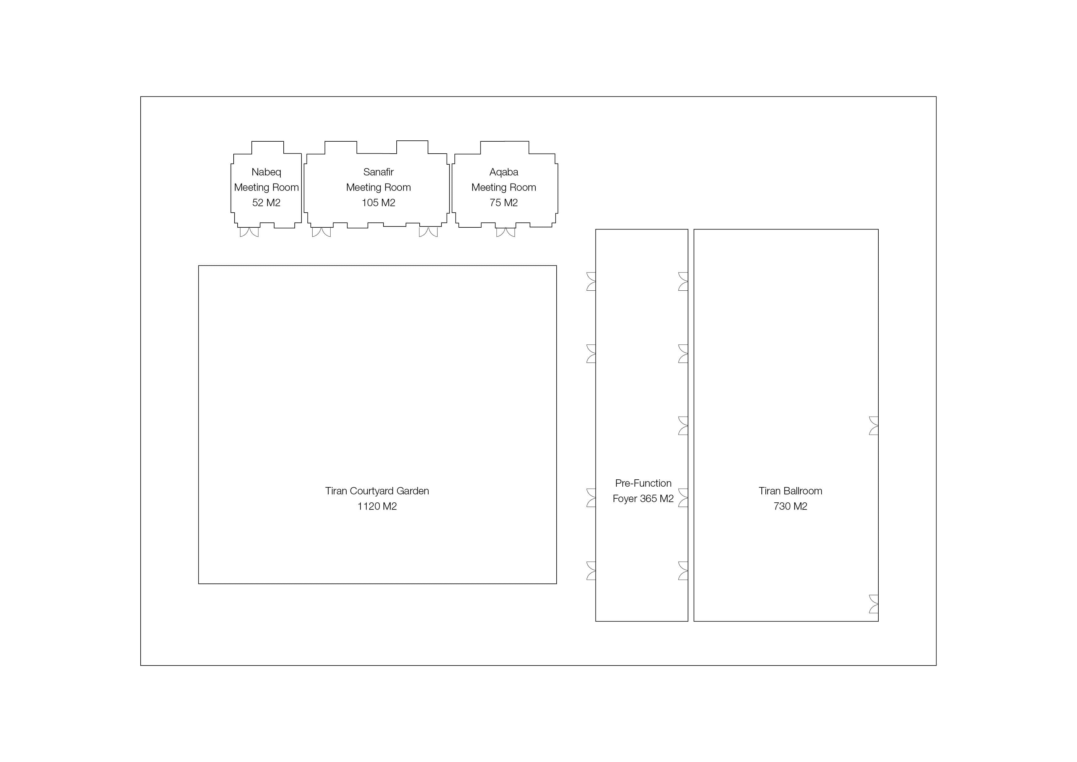 With floor-to-ceiling windows that look out over the Resort and the Red Sea, the pre-function foyer can serve as a break room or cocktail reception for the adjacent Tiran Ballroom.