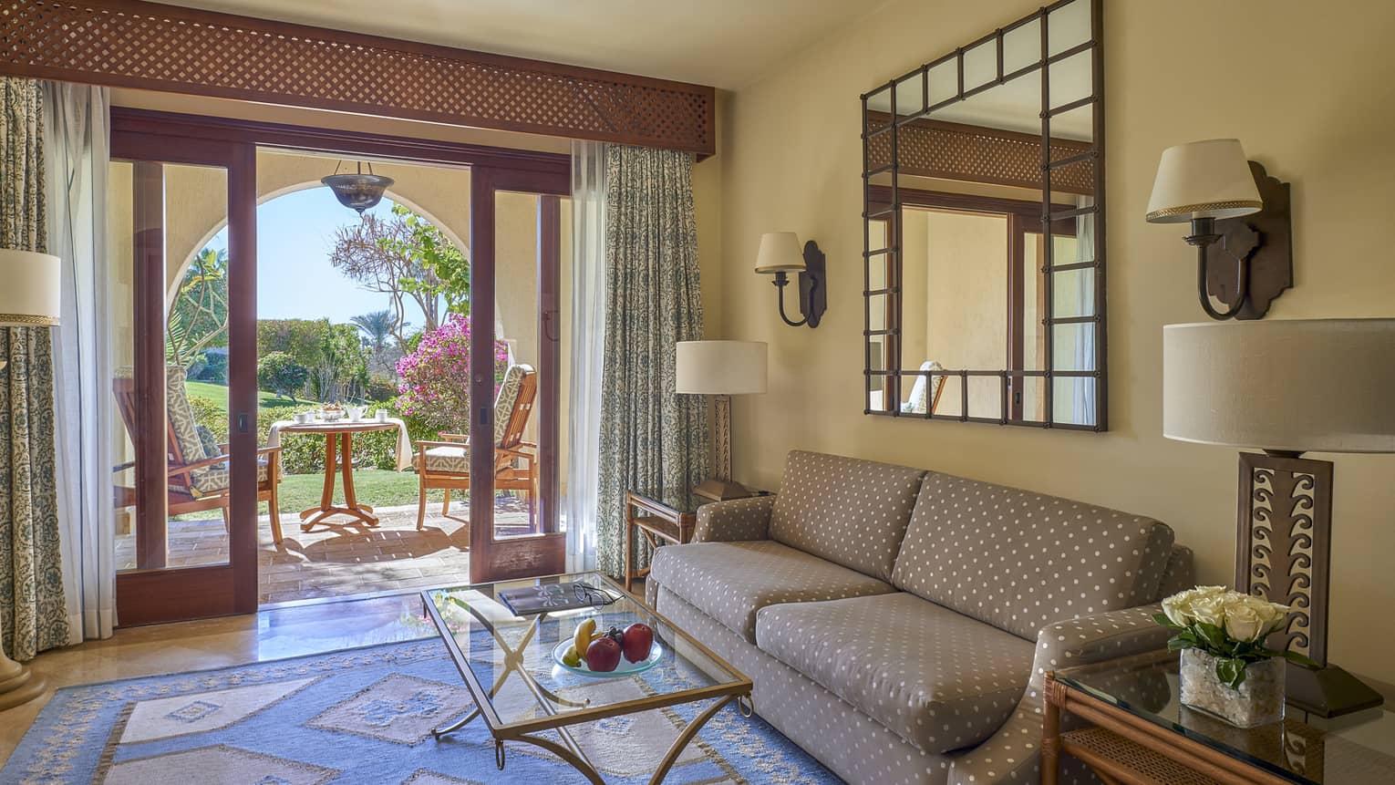 Bring together family and friends in this two-bedroom residential suite, decorated in a warm traditional Arabian style.
