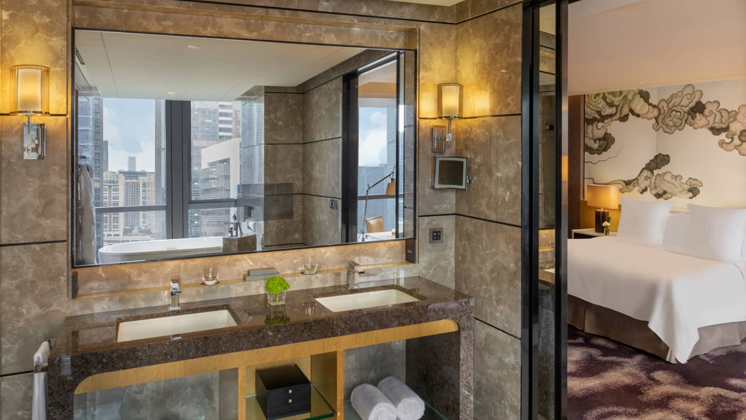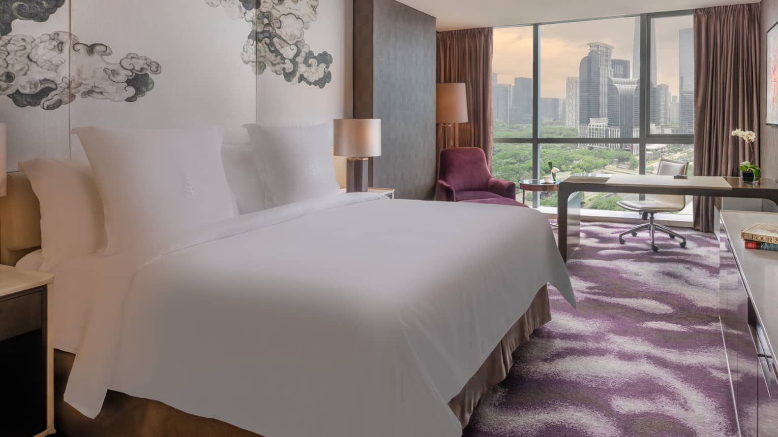 Club Grand RoomWith the energy and buzz of Shenzhen on vivid display from your windows, these rooms offer a haven of calm and quiet, with modern design, a spa-inspired bathroom and a custom king bed.