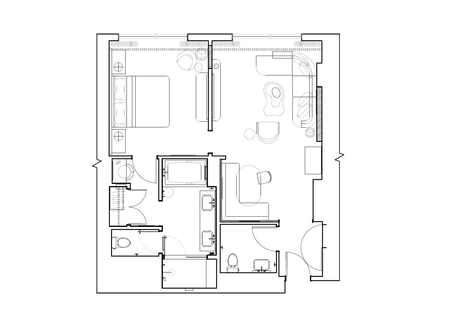 With separate work, living and sleeping areas, this sleek and modern suite is perfect for longer stays.