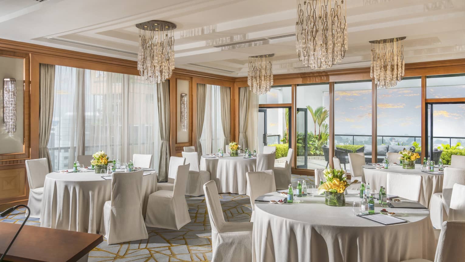 Invite your guests to watch the sun set over the Singapore skyline as they sip cocktails on the outdoor patio. Ideal for board meetings or special dinners, Windows West is a private penthouse salon that is guaranteed to impress.