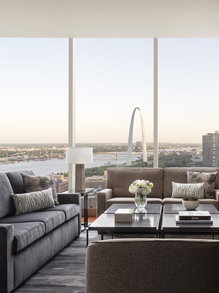 Indulge in our luxury hotel suites in St. Louis. Our spacious and beautifully appointed suites offer exclusive amenities and services, available only with the St. Louis Suite Experience. Let us take care of the details while you create memories and enjoy your stay to the fullest. Play in our Topgolf Swing Suite, relax with a movie and sleep in with a late checkout.