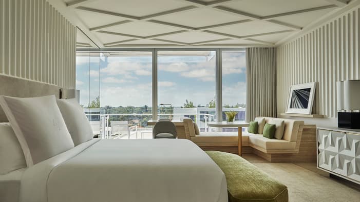 Discover our luxurious Miami Beach bungalows at The Surf Club. Offering stunning beach views, these bungalows are situated on the second floor of the iconic Cabana Row and each feature private balconies, elegant design and ample natural light. Originally envisioned by architect Russell Pancost, these bungalows capture the true essence of The Surf Club, blending timeless charm with modern amenities for an unforgettable stay. Experience the perfect beach retreat in these exclusive sun sanctuaries.