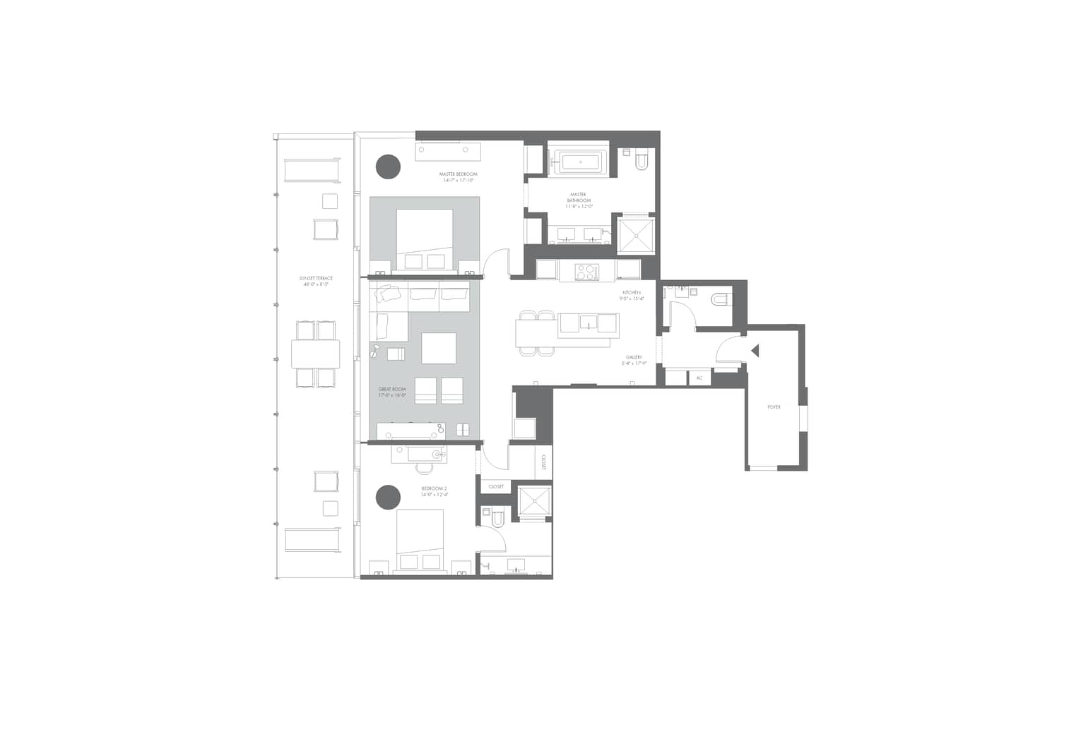 Feel at home in these spacious two-bedroom suites overlooking the city.