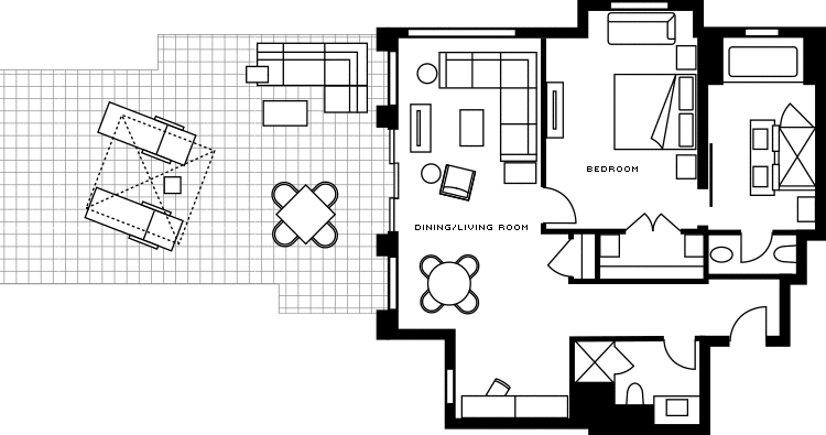 - 125-centimetre (49-inch) flat-screen TV with cable and satellite stations