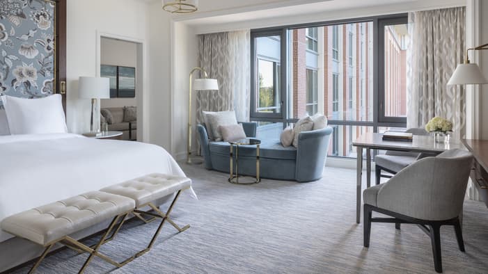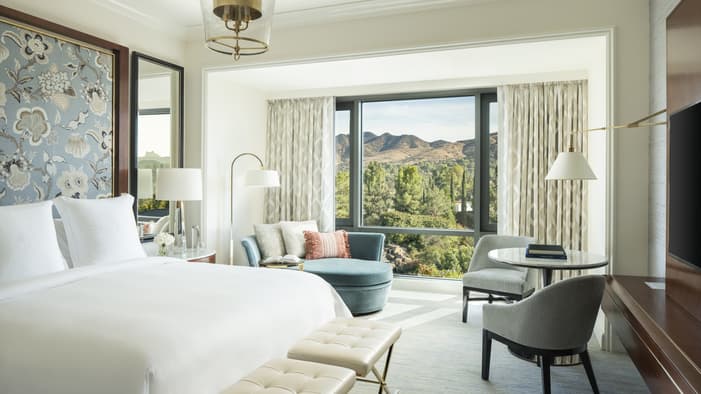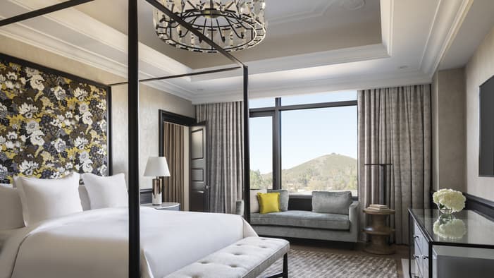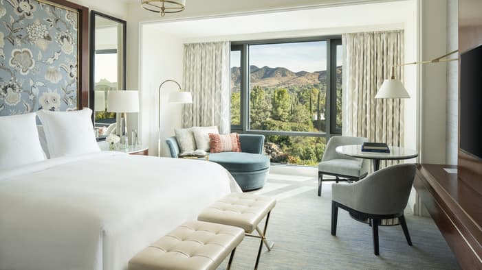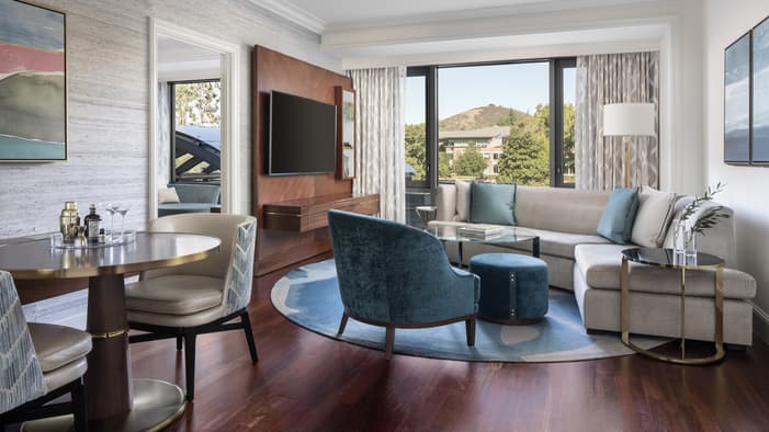 Experience luxury at Four Seasons Westlake Village, approximately a 20-minute drive from Malibu. Our hotel suites offer spacious accommodations with separate living and sleeping areas, ideal for business trips or family vacations. Enjoy the serene ambiance and elegant design of our hotel rooms featuring modern amenities and views. Whether you choose a suite or a guest room, you’ll find comfort and privacy in our settings, perfect for a relaxing stay.