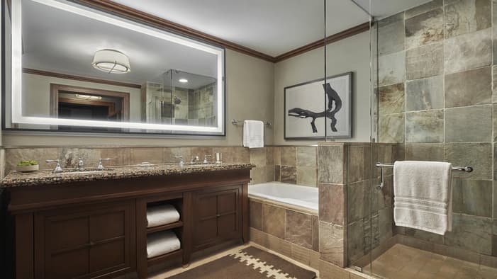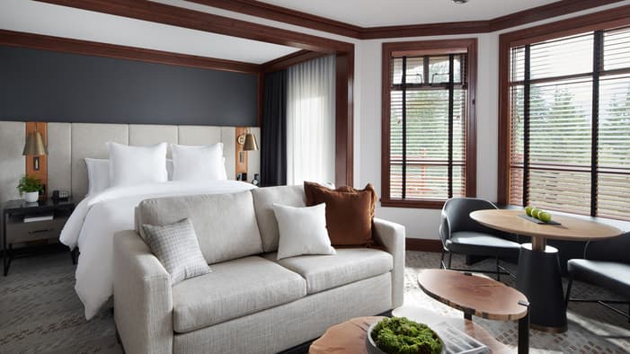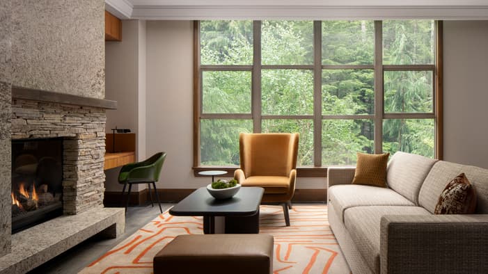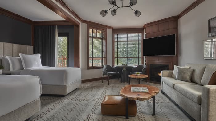 Our Whistler accommodations boast some of the largest hotel rooms in the village, with elegant interiors complimented by views of snow-capped mountains or serene courtyards. Or, enjoy the ultimate suite experience with a stay in our Whistler suites, which feature a separate living area and en suite bedrooms for unmatched comfort.