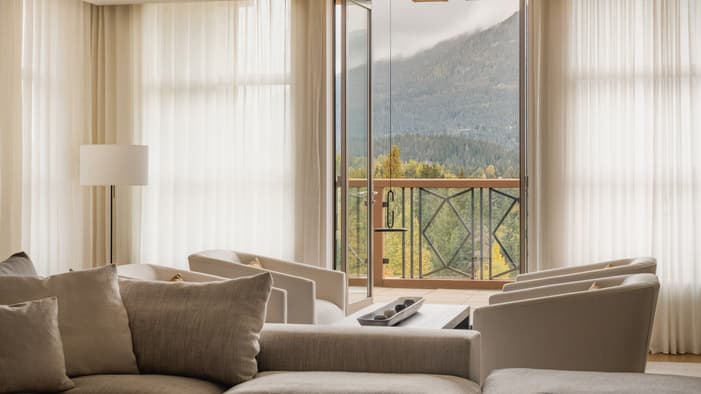 Our Whistler accommodations boast some of the largest hotel rooms in the village, with elegant interiors complimented by views of snow-capped mountains or serene courtyards. Or, enjoy the ultimate suite experience with a stay in our Whistler suites, which feature a separate living area and en suite bedrooms for unmatched comfort.