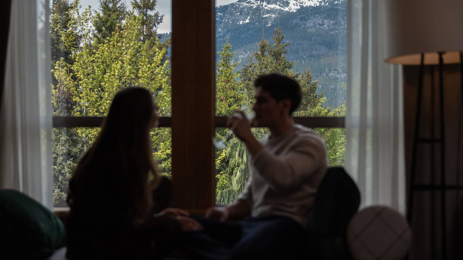 The Blackcomb SuiteSpread out in the Blackcomb Suite, which features its own living room, a dining area and a kitchen – all with expansive mountain and pool views.