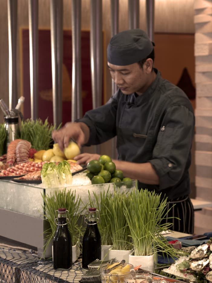 白天,在泳池畔沐浴着明媚的阳光,惬意品享创意酒吧小食。夜幕降临时,在休闲雅座上落座,与友人谈天小聚,在悠扬的背景音乐下畅享鸡尾酒和亚洲风味菜肴,欣赏迷人的城市天际线。