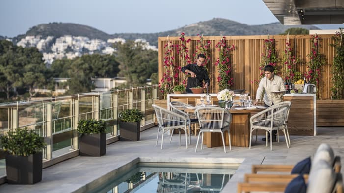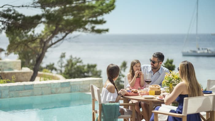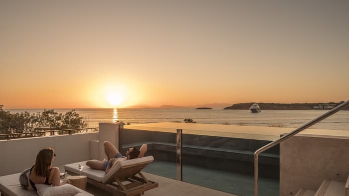 Nafsika从每间客房和套房向外望去,万顷碧波尽收眼底,部分房间还设有私人泳池,空间宽敞且洒满了自然光线。Nafsika 楼设有三间餐厅,分别是意大利餐厅 Mercato、热闹的酒吧及酒廊 Avra 和池畔烧烤餐厅 Helios。这里还有活力泳池、曼妙水滨、健身中心和名品店,勃勃生机汇集于此,令其成为酒店的社交聚会高地。