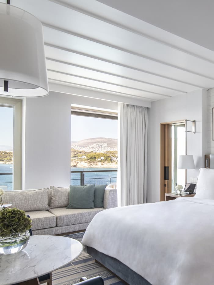 置身专属于您的宽敞居庭,婀娜多姿的爱琴海就在窗外碧波荡漾。海景阳台配有室外休闲家具,可以在此用餐或消磨午后时光。