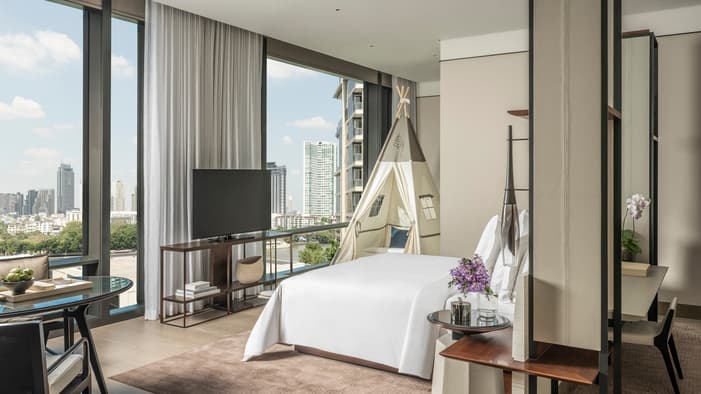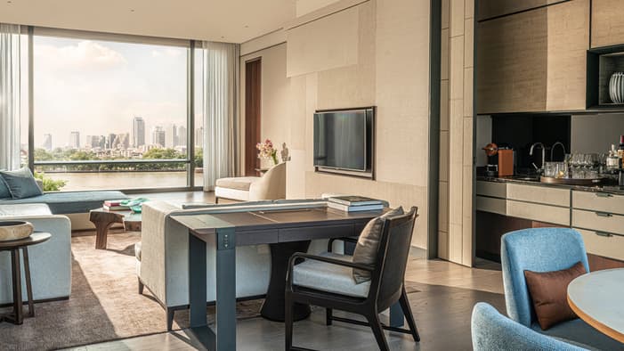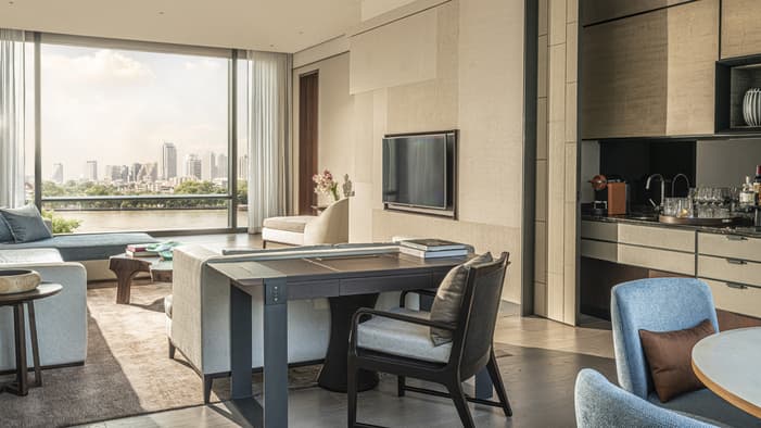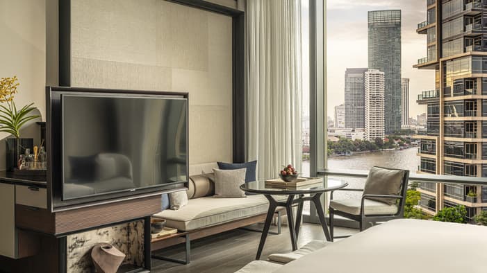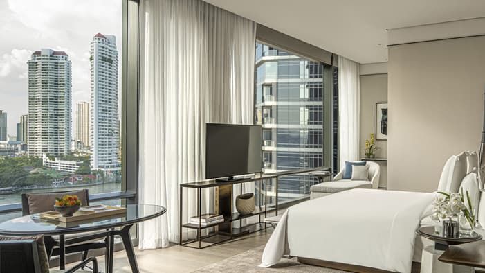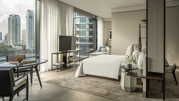 我们的 299 间客房和套房洋溢着温馨而优雅的居家气息。风格现代的室内设计、精挑细选的家具陈设和洒满整个空间的自然光线,共同营造出曼谷河畔独树一帜的地域感。