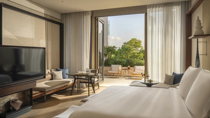 格调非凡、陈设齐全的客房提供舒适而私密的空间,同时营造出宁静祥和的氛围,让您在入住期间尽情舒展身心。