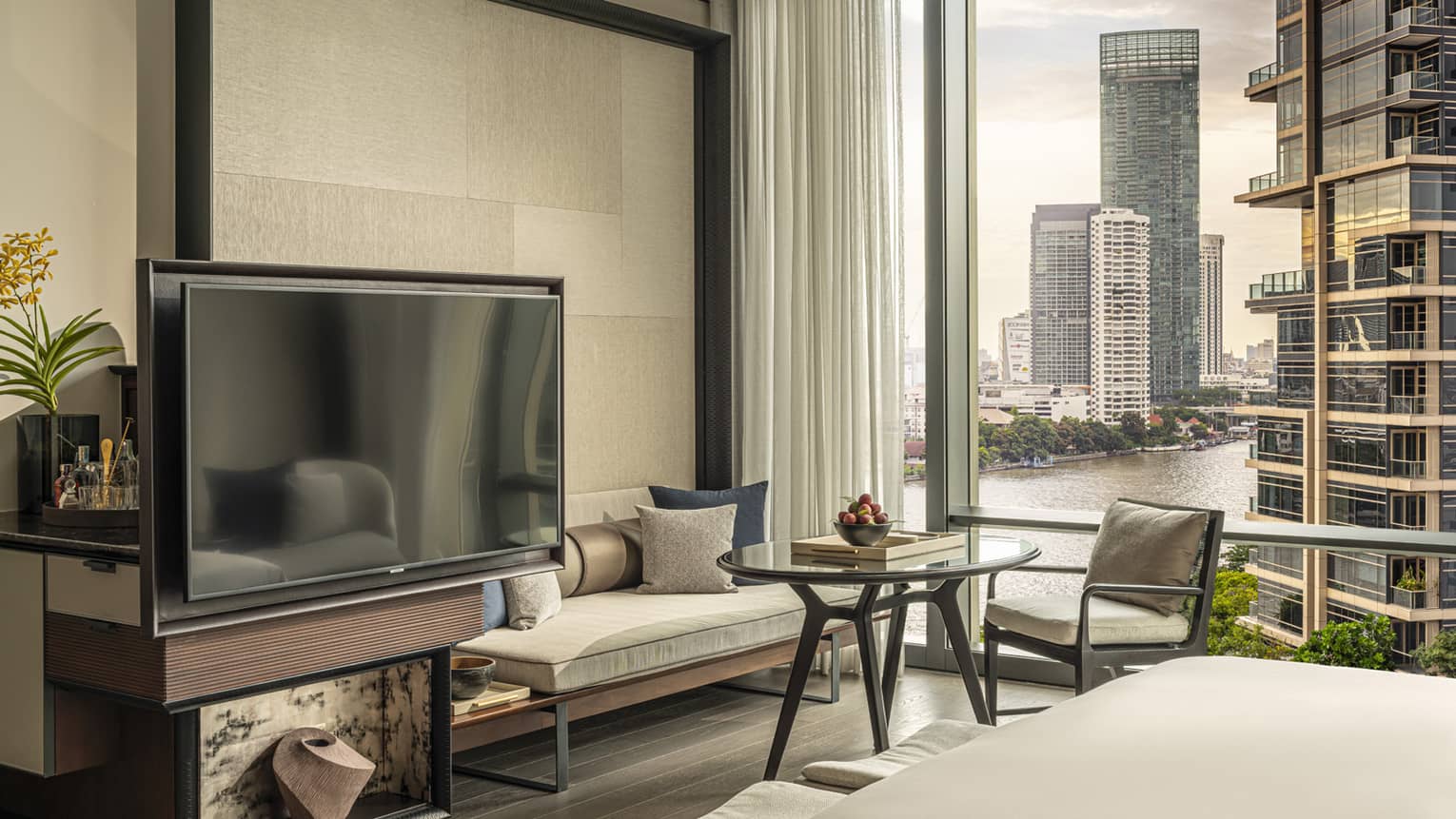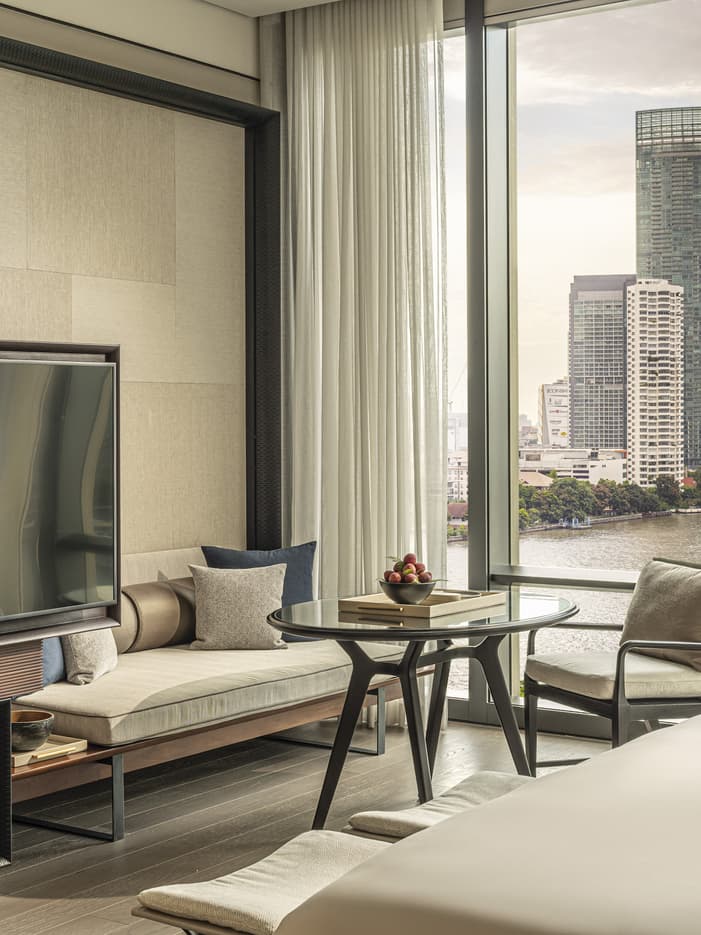 闹市中的这方恬静天地自然光线充盈,窗外的湄南河秀丽景致和美丽的庭院近在咫尺。挑高天花板和宽阔的景观窗营造出开敞通透之感。