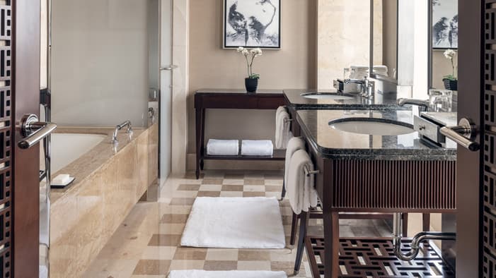 我们所有的客房和套房均以东方传统文化与艺术元素装点,从木雕门、陶瓷花瓶,到装裱书法作品,再到中国文学和手工艺品书籍,展现着中国文化的深厚底蕴。