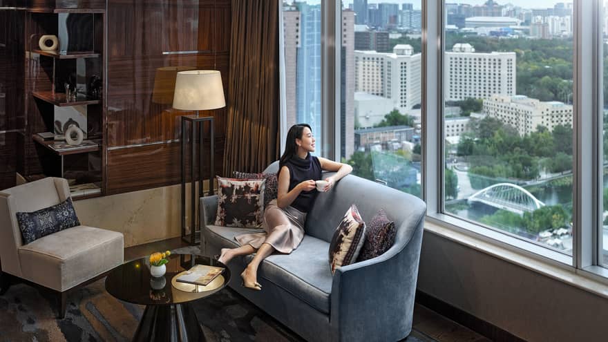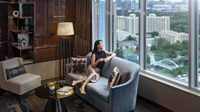 联通房专为多代同堂或结伴旅行的家庭及团体特别打造。一门双锁巧妙贯通两室,不仅拓展了起居空间,更在共享与私密间寻得合理平衡。尊享城市天际的豪华双床房可连通主席套房;豪华客房、行政河景客房或尊贵城景客房皆可在同类房型中选配连通大床房与双床房。