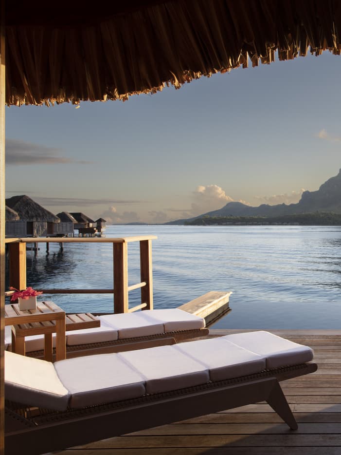 这些一卧室套房可欣赏到绿松石泻湖对面雄伟的奥特马努山的美景,是寻求浪漫“套房生活”体验的蜜月旅行者的理想选择。 宽敞的起居室通向甲板,而卧室则可通往享有壮丽景色的私人淡水小型游泳池。