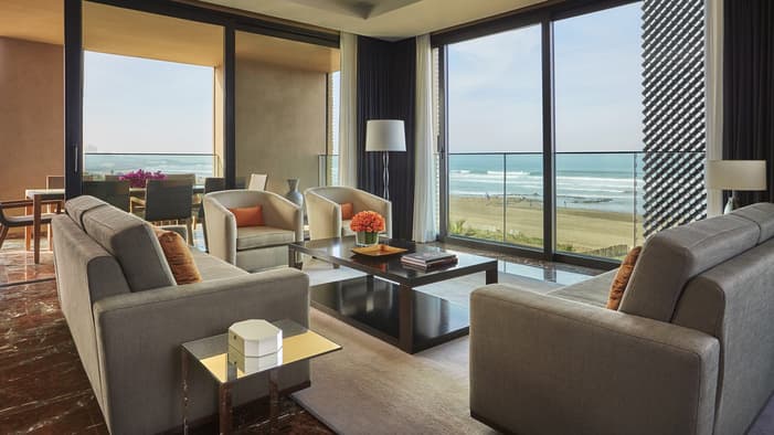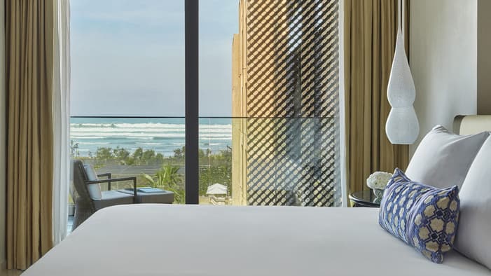 我们的海滨酒店位于摩洛哥最大、最热闹的城市卡萨布兰卡,沿坡而建,直通大西洋海岸,沐浴在自然光之中。酒店所在海滩距离市中心仅 10 分钟路程,您可以从私人阳台上欣赏一览无余的海景,惬意领略卡萨布兰卡久负盛名的浪漫气息。我们以兼具历史与现代感的建筑杰作、超前沿的艺术氛围和世界一流的餐厅,向您展示着这座迷人港口城市的凝萃华彩。一切非凡体验,从一盘在 Bleu 餐厅现点现做的新鲜当地海鲜开始。