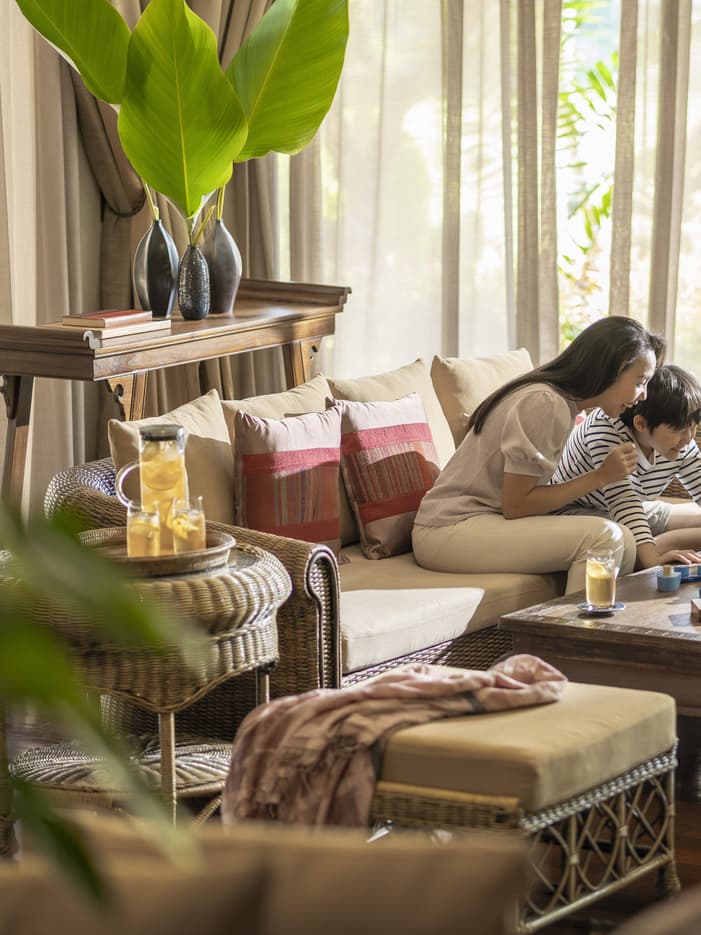在我们的四季住宅尽享妙不可言的清迈家庭逸居体验。酒店的底层住宅专为年轻家庭设计,配有宽敞的起居区和小型私人冷水池,让您珍贵的假日时光更加丰富多彩。在酒店葱翠繁茂的花园和周边壮美山景的环绕下,与家人在此体验独属于清迈的迷人魅力。立即预订,开启一段难忘的家庭假日。